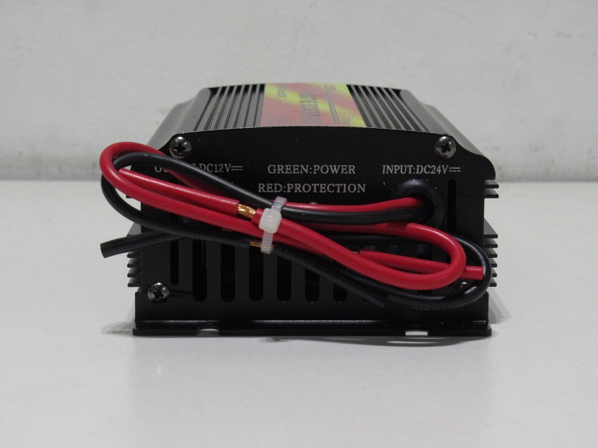 Conversor capaz de transformar desde un rango de 24V DC de un vehículo o maquinaria, a 12VDC con una corriente de salida de 20A. Aplicación en circuitos de un consumo menor a 240W, para la alimentación de cargas de 12V DC. Aplicable para aparatos con bajo voltaje cuya corriente es menor a 20A, voltajes de entrada menores a 40V DC y salidas de voltaje de 12V DC u otros.